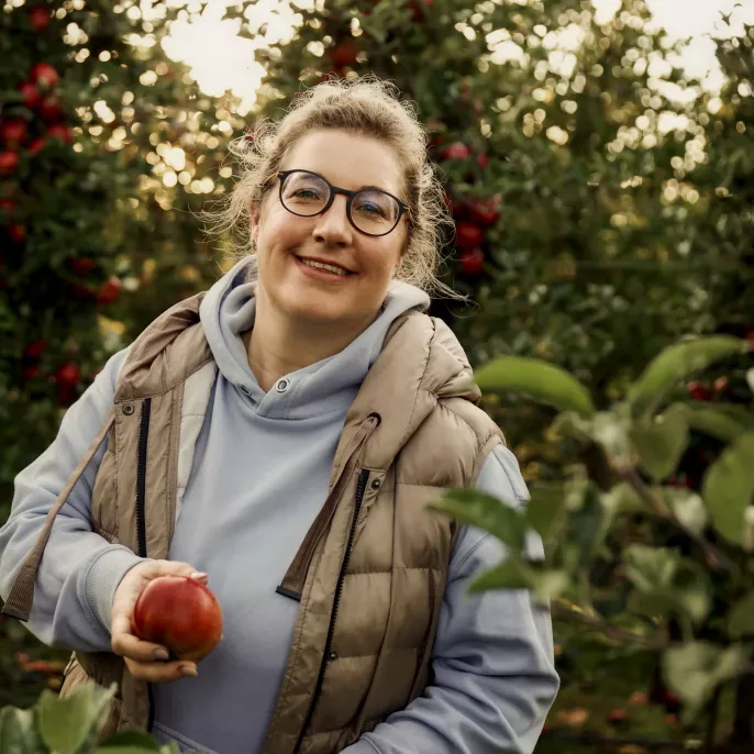 Sie leitet den Hofladen und jongliert Marketing, Vertrieb und Buchhaltung. Ihr kreativer Kopf mit Herz für Natur, Achtsamkeit und Menschen sorgt auf dem Hof immer wieder für frischen Wind. Bei ihren beliebten Betriebsführungen bietet sie Kids und Teens spannende Einblicken hinter die Kulissen des Apfelhofes.