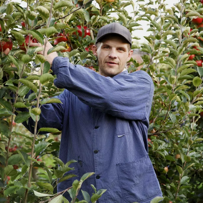 Er pflegt und erntet Äpfel, Trauben, Gemüse und Kürbisse mit Hingabe. Er ist der wichtigste Mann hinter den Kulissen. Bodenbearbeitung und Baumschnitt sind bei ihm bestens aufgehoben. Genau wie seine Nichte und Neffen, die ihn nicht umsonst zum Lieblingsonkel erkoren haben.